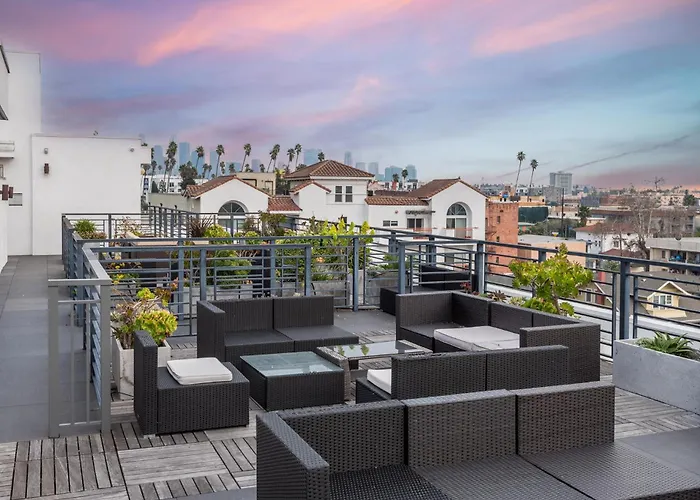 The 2-room Sleek & Modern 2Br Apt: Rooftop Views & Relaxation lies within 10 minutes' drive of Paramount Studios and approximately 5 minutes' walk from Wilshire/Normandie tube station.